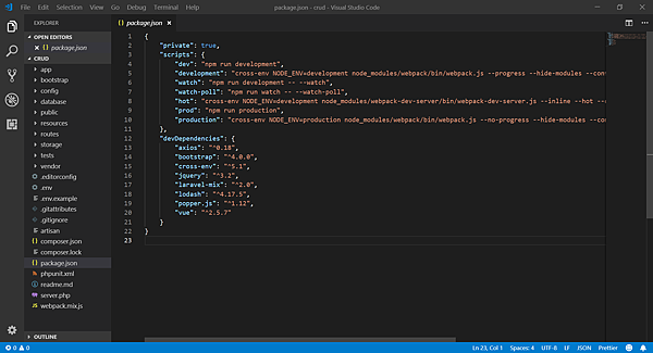 圖中我們知到會裝 Axios 、bootstrap、cross-env、jquery、laravel-mix、lodash、popper.js、vue ,你所看到東西,就是我們等會我們會安裝的封包,之後,我們安裝的封包,都會在這裡做記錄!